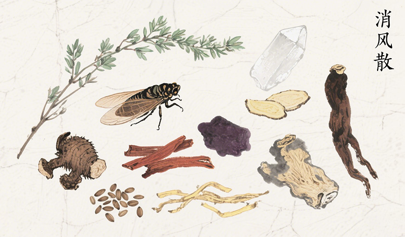 消风散是中医经典方剂之一,由荆芥、防风、牛蒡子、蝉蜕、苍术、苦参、石膏、知母、当归、生地、胡麻仁、木通、甘草等药物组成。