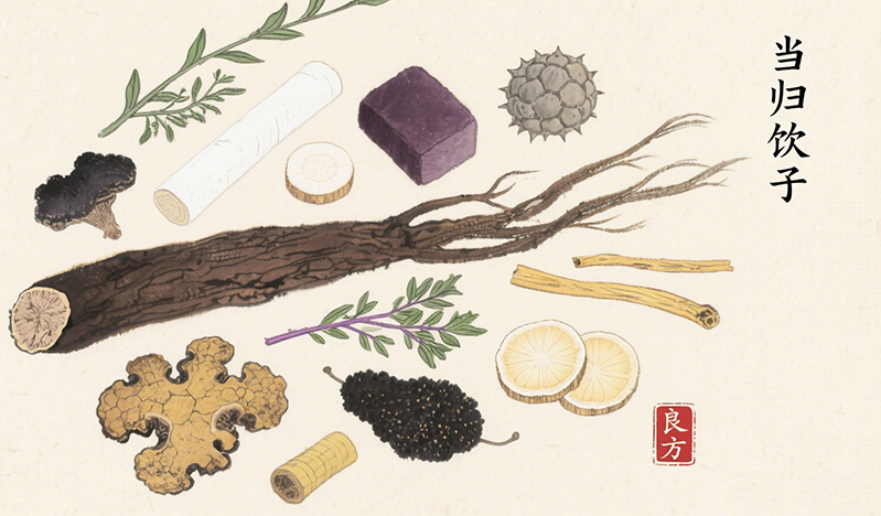 当归饮子出自《重订严氏济生方》,方由四物汤合荆芥、防风、黄芪、白蒺藜、何首乌组成。